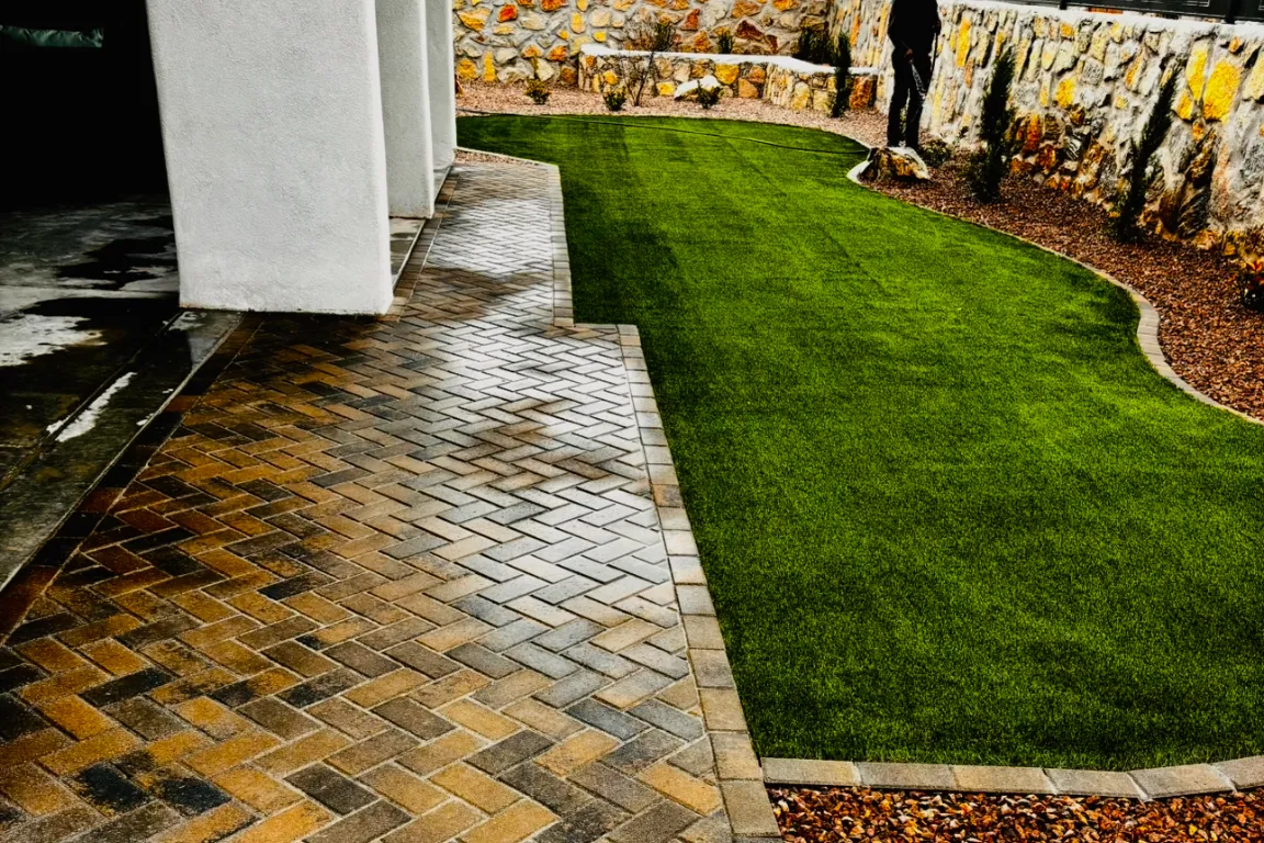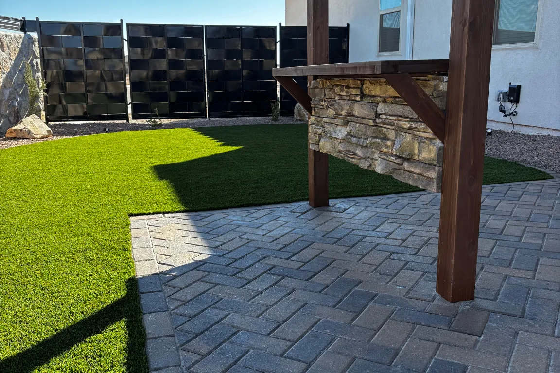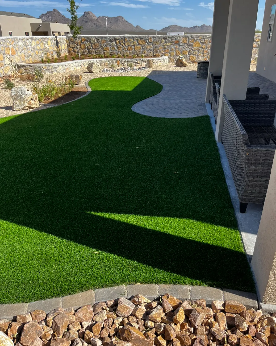 Synthetic grass is low-maintenance and perfect for dry climates, while real grass provides a natural feel but requires watering and upkeep. We can help you choose the best option!